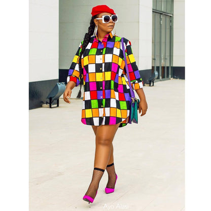 Casual Loose Sun Dress with Vibrant Checkered Midi Pattern