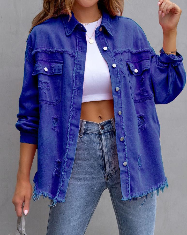 Women's Casual Tops: Autumn and Spring Fashion Shirt Jacket with Ripped Design