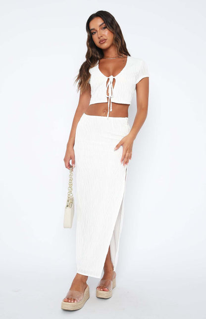 Summer Wave Pattern Sexy Short Sleeve Skirt Suit